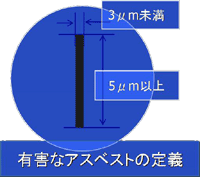 対象とする石綿には微細なもので直径0.01μm (ナノサイズ)