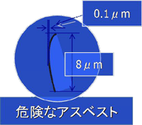 対象とする石綿には微細なもので直径0.01μm (ナノサイズ)